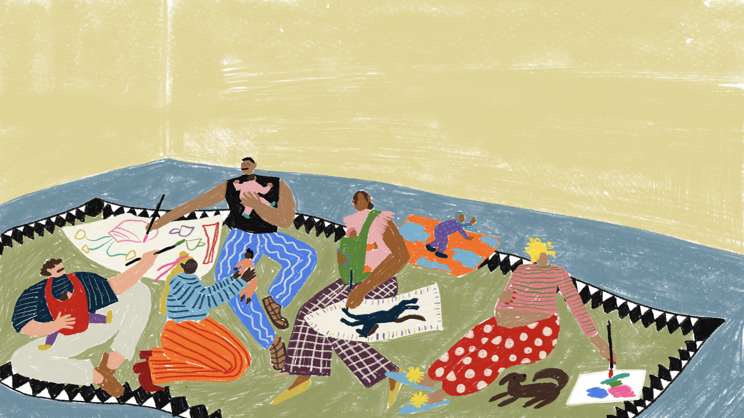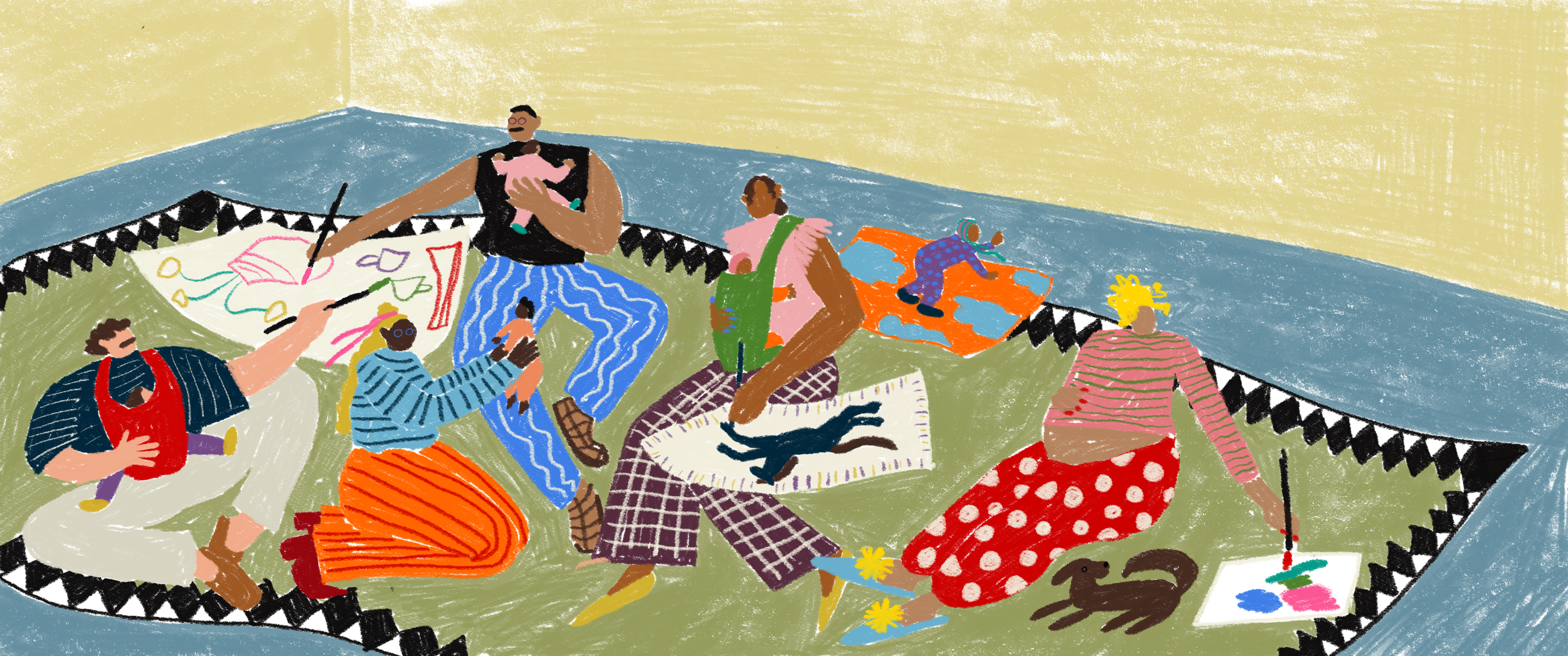 Elternschaft braucht Verbündete! Kommt zusammen, malt gemeinsam und connected euch mit Mamas & Papas! Ein Kurs für Eltern, die sich eine kreative Auszeit mit ihrem Baby wünschen. Während euer Baby neben euch liegt oder schläft, malt ihr in entspannter Runde ganz in eurem Tempo. Der Kurs bietet Raum für Kreativität und Austausch mit anderen Mamas & Papas, denn manchmal tut es richtig gut, sich über das Baby-Life auszutauschen und zu erfahren, wie es woanders läuft. Ihr braucht keine Vorkenntnisse, nur Lust auf Farbe.